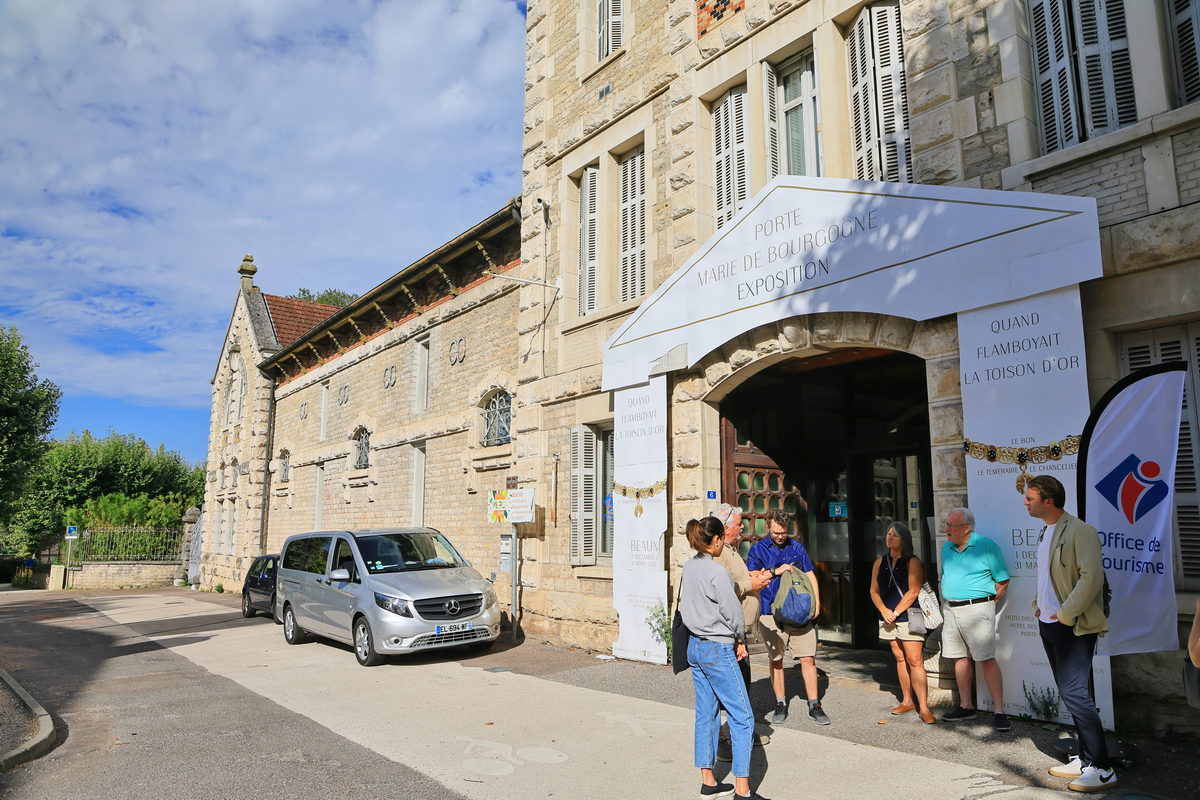 在勃根地的第2天,我們預約了一整天參觀酒莊、葡萄園以及試飲各種等級紅白酒的導覽行程,由於這樣的參訪行程,酒莊之間有著相當的距離,同時隨著導遊的介紹與分享之下進行一整天多達12款不同等級的紅白酒試飲,因此藉著報名導覽,搭乘導遊的專車一同前往,不僅輕鬆寫意,同時也避免酒駕,事最為安全又舒服的體驗。於是這天早晨我們前往博訥旅遊中心(OFFICE DE TOURISME BEAUNE & PAYS BEAUNOIS – PORTE MARIE DE BOURGOGNE)與導遊和同行旅伴報到會合後,我們隨即搭車前往第一個酒莊【Chateau de Corton Andre】。