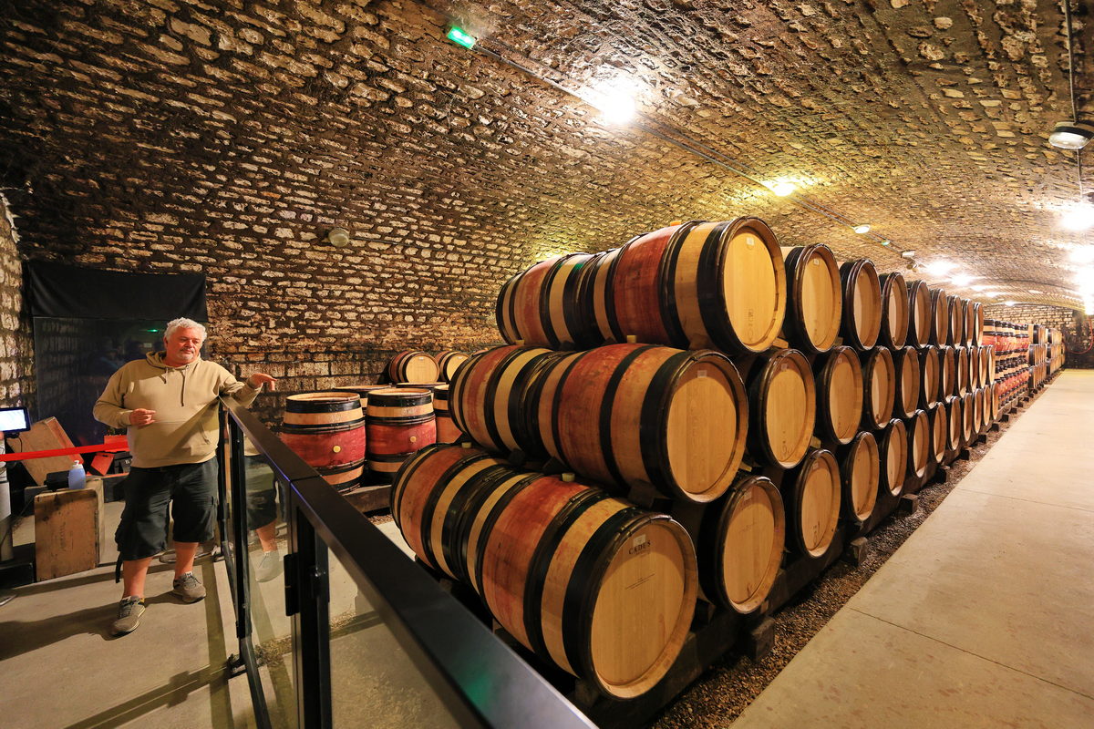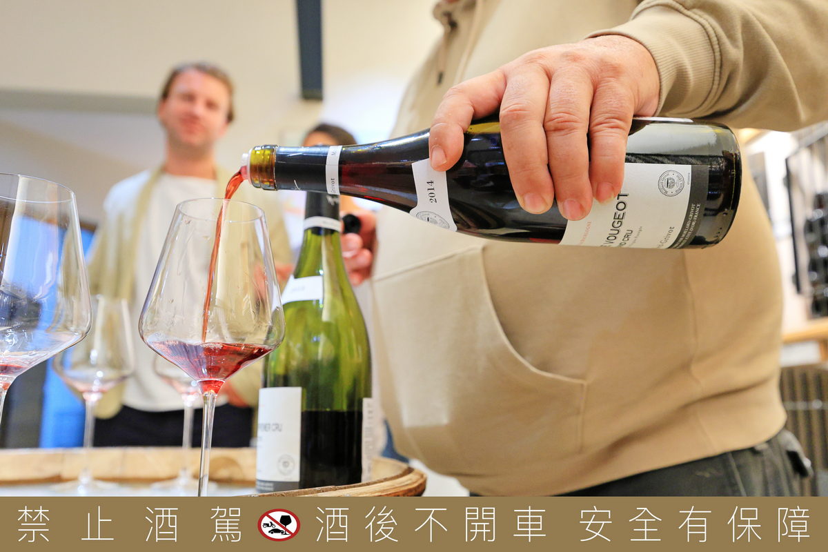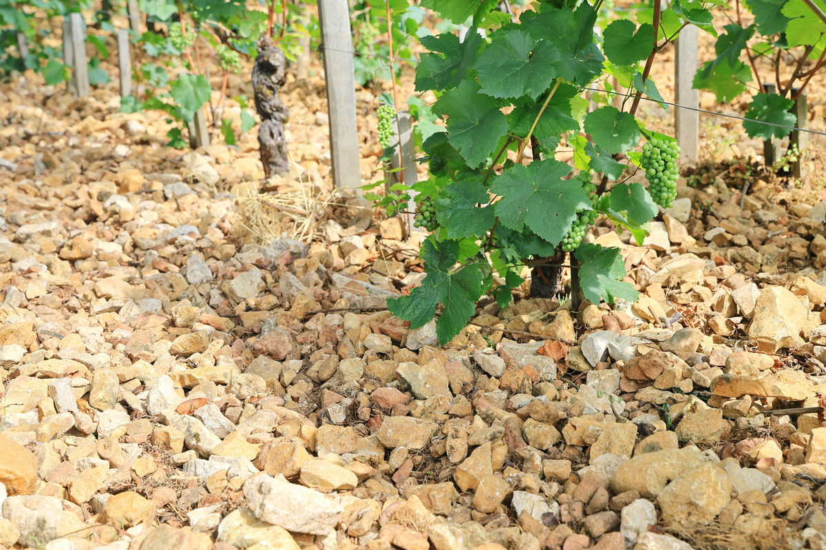 抵達這座酒莊,隨即映入眼簾的即是猶如昔日地方仕紳所打造的一處城堡建築型式的宅邸,身後即是正在等待成熟的大片黑皮諾(Pinot Noir)葡萄園,而對比在台灣以水果為食的葡萄園,在勃根地的葡萄園不僅高度僅1-1.5公尺左右的高度,同時地面鋪滿碎石,這樣的農田種植型態頓時讓我好奇地向導遊詢問,導遊此時與我們分享著,雖然黑皮諾在種植上必須有著適合的土壤、礦物以及溫度、排水等條件造就它的產量稀少的嬌貴,但為了讓它有著最好的環境適應力,農人不會屈就於它,時時給予最為呵護的種植條件,反而是將這些老藤葡萄種植於土壤深處,表面鋪設碎石提供良好的排水以及避免泥濘之外,藉由自然環境的狀態下,逼得黑皮諾為了生存而持續向下紮根吸取泥土中的水分,進而將其養分逐漸累積縮於結成葡萄的果實之中,屆時等到可採收釀酒時,方能嶄露此地區葡萄酒獨有的礦石、果香等風土表現。