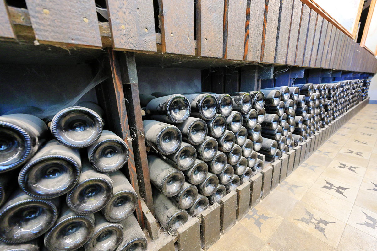 接著走進酒莊內,狹長的廳室內,蒐藏著上百瓶的葡萄酒以及吧台的陳列空間,一開始還以為這是參加了一場以賣酒為主的導覽行程,頓時有點小失望,沒想到的是,隨著導遊的引領之下,走向一旁的小門後,頓時大開眼界,原來過往看著歐美電影中的酒窖,以超過萬瓶且向是相當古老的佈滿灰塵、蜘蛛網之狀態,靜靜地躺在這相當沁涼舒適的幽暗地窖之中,最後我們走向酒窖最深處,眼前的地窖空間,隨著低矮的拱型石柱建築以及昏暗的燈光,猶如像是參加神秘魔法或宗教活動,只是這次的活動則是在這地窖之中感受各種等級的紅白酒,相當有一秒進入中世紀的沉浸感呢!