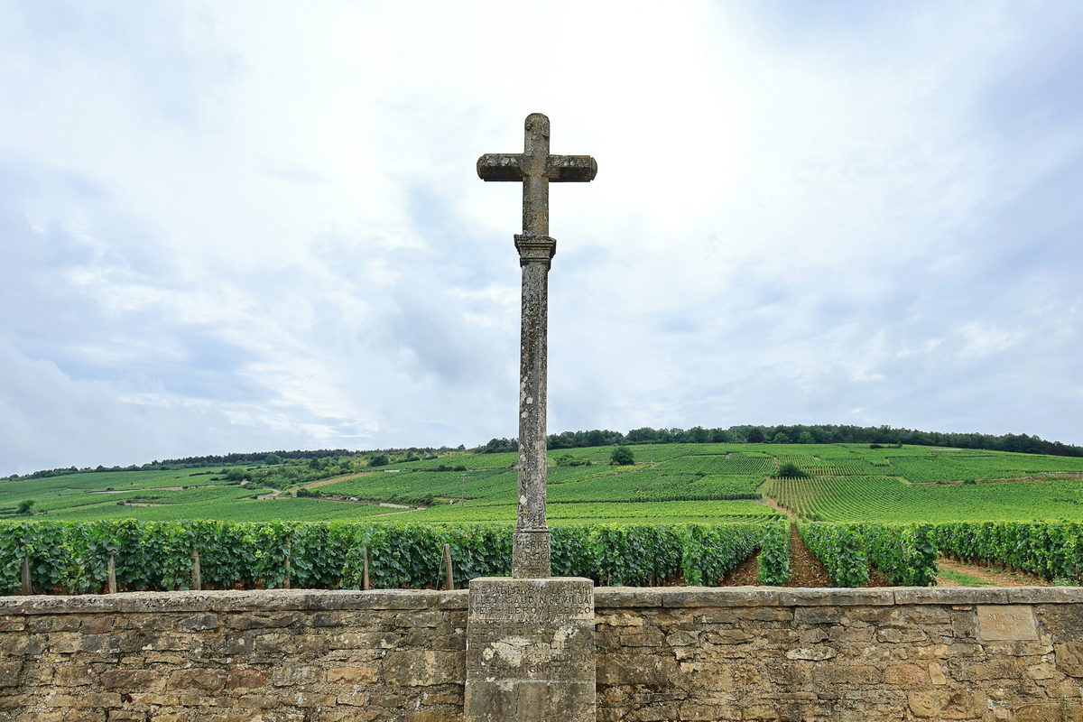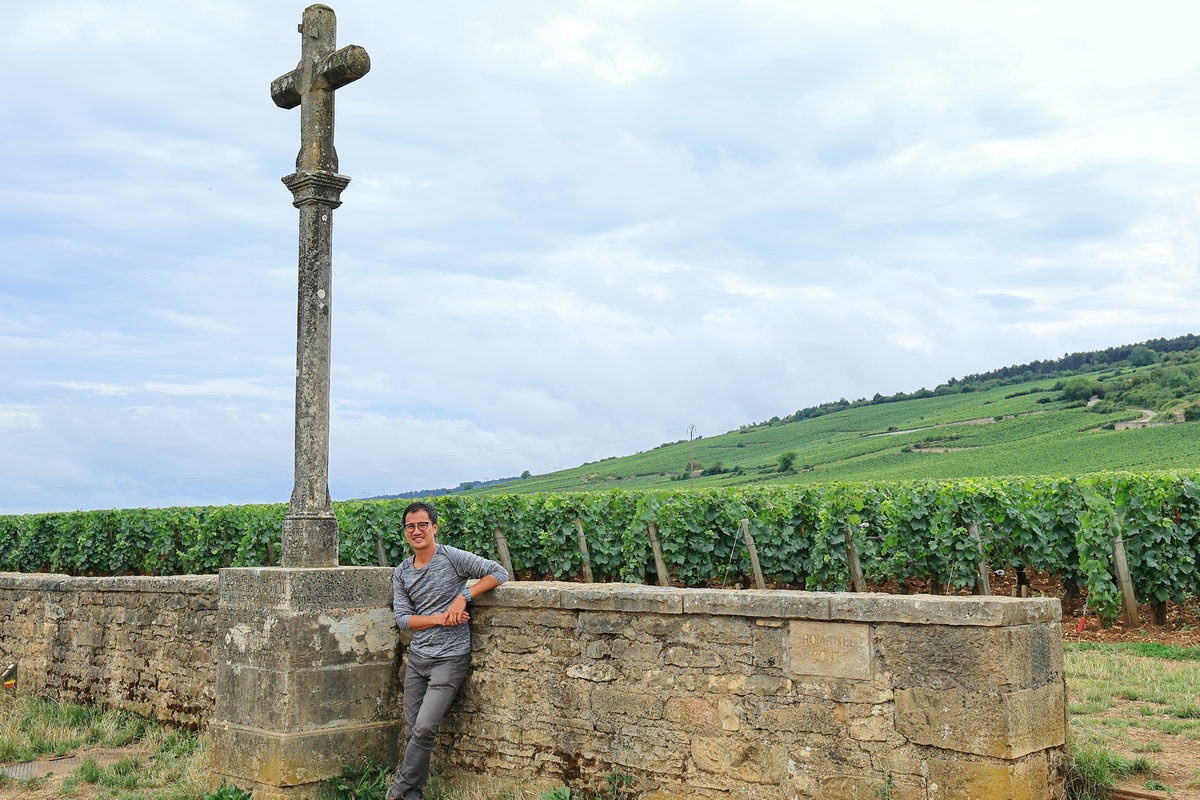 體驗完這上下午共12支芬芳的葡萄佳釀後,接著更是令我相當期待的探訪勃根地眾多酒莊之中,自西元1580迄今葡萄園未曾擴大種植,僅以少少的1.8公頃土地,年產約4000瓶極少量的紅酒,而這座酒莊,就是目前單瓶價格最為昂貴的【羅曼尼康帝(Romanée-Conti)酒莊】出產的酒,而目前即便目前依照等級、產地的不同,單瓶紅酒約從新台幣20萬甚至最頂級破新台幣百萬令人咋舌的價格區間,它不僅依舊令紅酒收藏/品味玩家趨之若鶩之外,同時有錢可能還買不到的瘋狂狀態。因此在這次導覽之中,導遊帶著我們前往這座酒莊的葡萄園,透過中世紀留存迄今的斑駁石牆、十字架,將視線逐漸望向前方沿著山坡而築的翠綠黑皮諾葡萄園,雖然這片猶如黃金一般極具價值的葡萄園只能隔著圍牆欣賞,以及這輩子也沒機會能感受這瓶紅酒給予的難忘感受,但能有機會從台灣飛往法國,甚至租車南下進行公路旅行的過程中,造訪此處感受其充滿故事性的色彩,對我來說,這樣人文刻劃下的風景色彩,已是相當滿足呢。