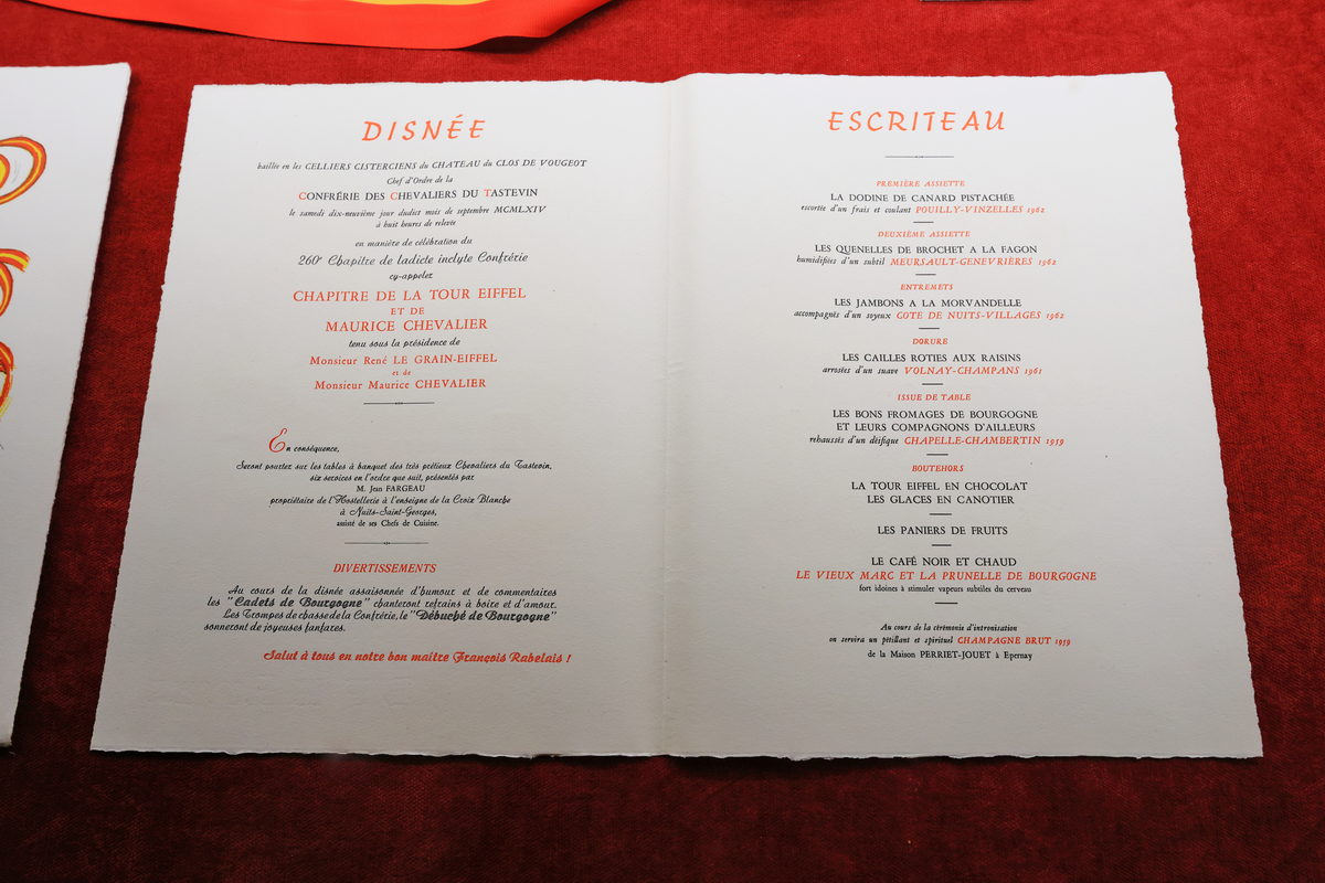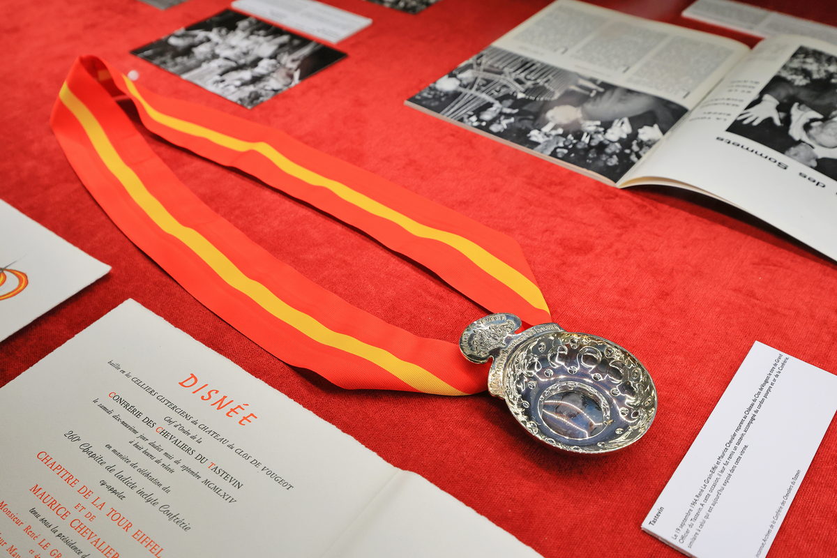 而今雖然在酒窖已無法看見昔日放滿儲酒桶的盛況,但這樣的空間,卻是因西元1929、1933與1934年這勃根地葡萄品質極好的年代,卻無法順利銷售期葡萄酒的30年代初期,進而於1934年11月,一群致力於推廣葡萄酒的人創立迄今葡萄酒文化中相當知名的“勃根地品酒騎士會”,而後買下武若莊園,利用這座寬敞的酒窖,邀請騎士會的會員於此齊聚一堂,感受勃根地葡萄酒的美好以及搭配著法國傳統家常菜的盛大宴會,此外勃根地品酒騎士會也會於每年春季/秋季召集250專業品酒人,在每個桌上放著15款匿名酒進行盲測品飲評鑑,而在酒窖中,更可透過象徵騎士會會員身分且向昔日製酒人/侍酒師評斷葡萄酒風味品質的試酒碟(Tastevin)項鍊等陳列品,感受勃根地這塊土地是如何重視自己的釀酒歷史文化呢!