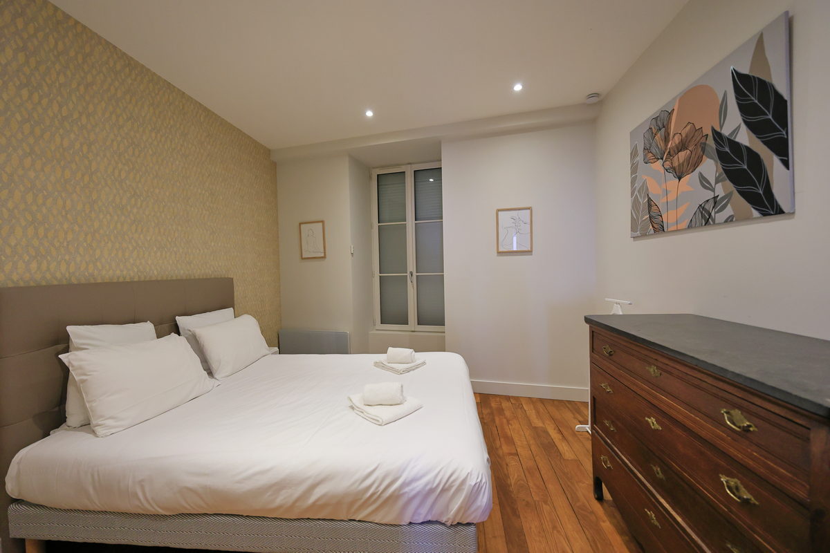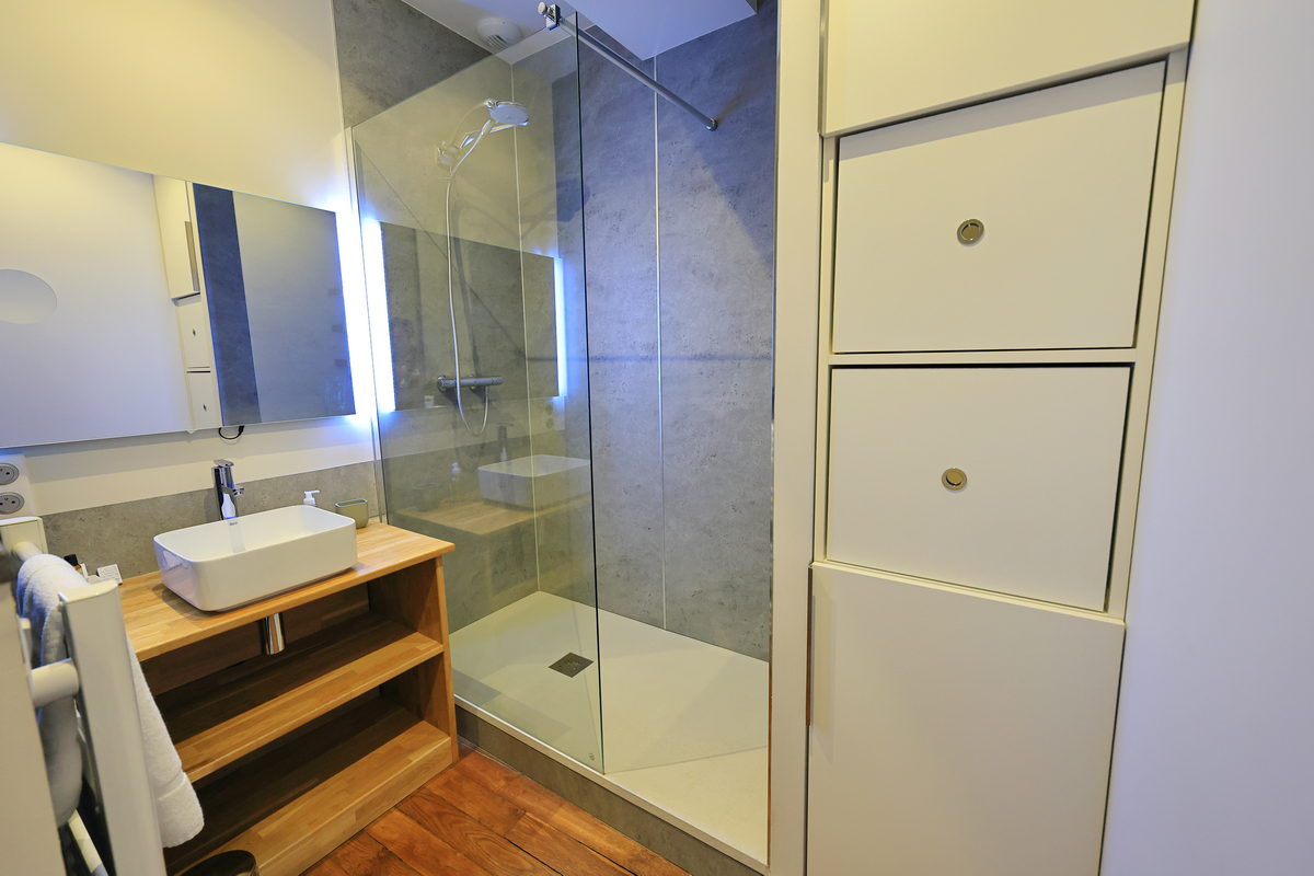 不過可別以為,這樣超過千年歷史的小鎮與住在超過百年的老房舍,會有著設備陳舊以及補給品等購物上的不方便,這次住在托內里爾33 (Tonneliers33)的公寓民宿,雖然外觀與大門、門鎖維持著超過百年的歷史風華,但走進民宿內,眼前即是相當現代化的居家陳設,寬敞的客廳之中,備有舒服典雅的沙發床、餐桌,以及打開木窗即可欣賞窗外的古老街景之外,連寢室也有著像是飯店等級的寬敞舒適,以及配備乾濕分離的淋浴空間,對於現代旅人的住宿需求可謂應有盡有,相當完備。