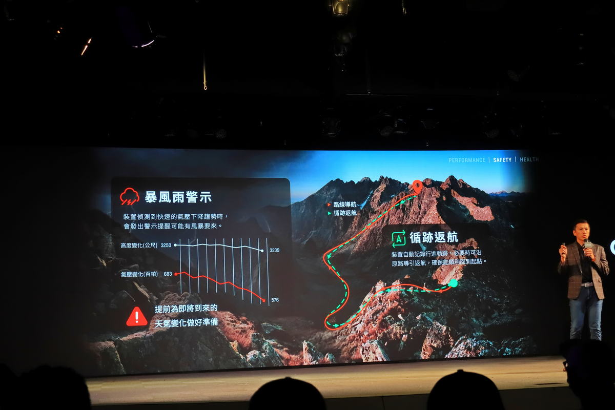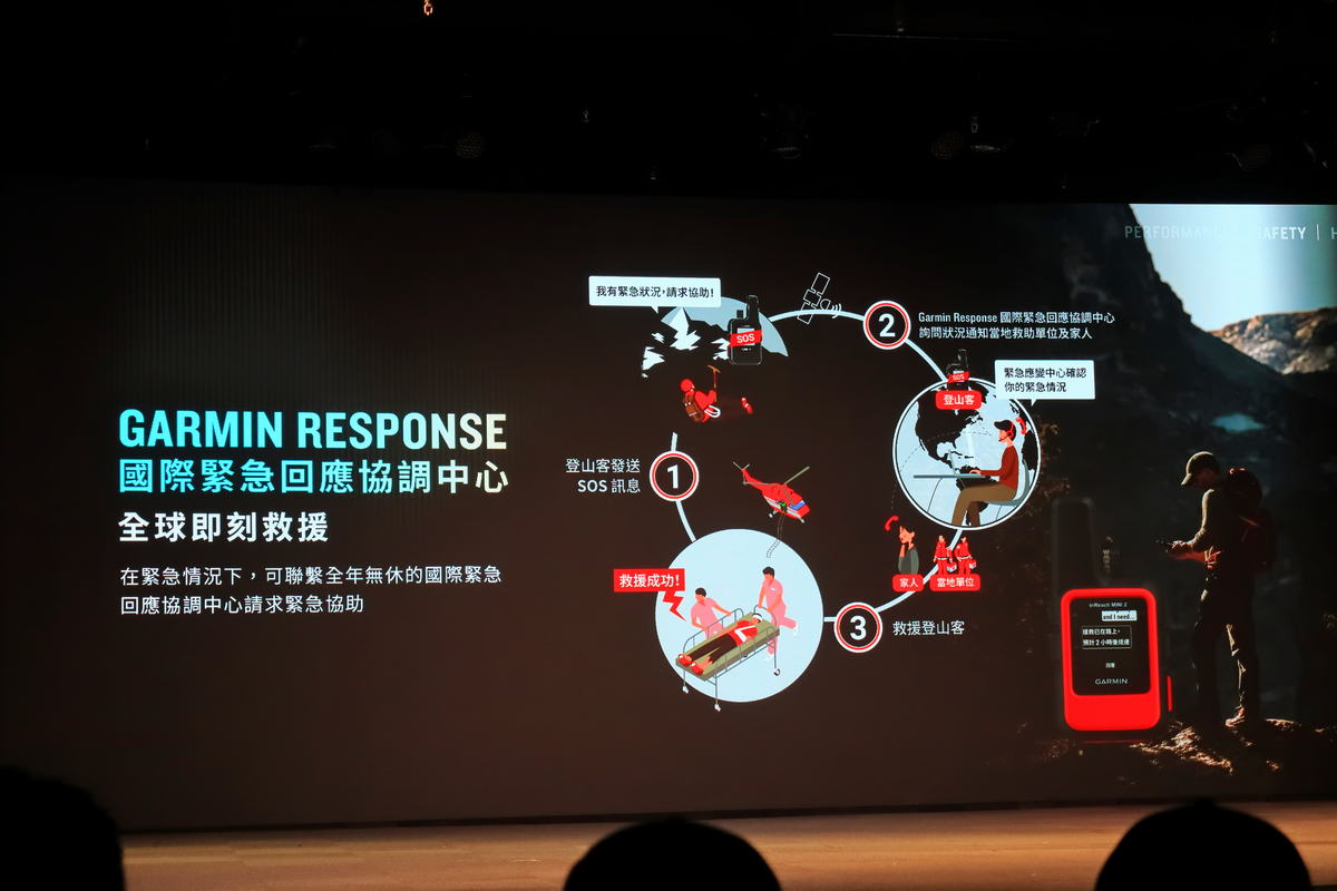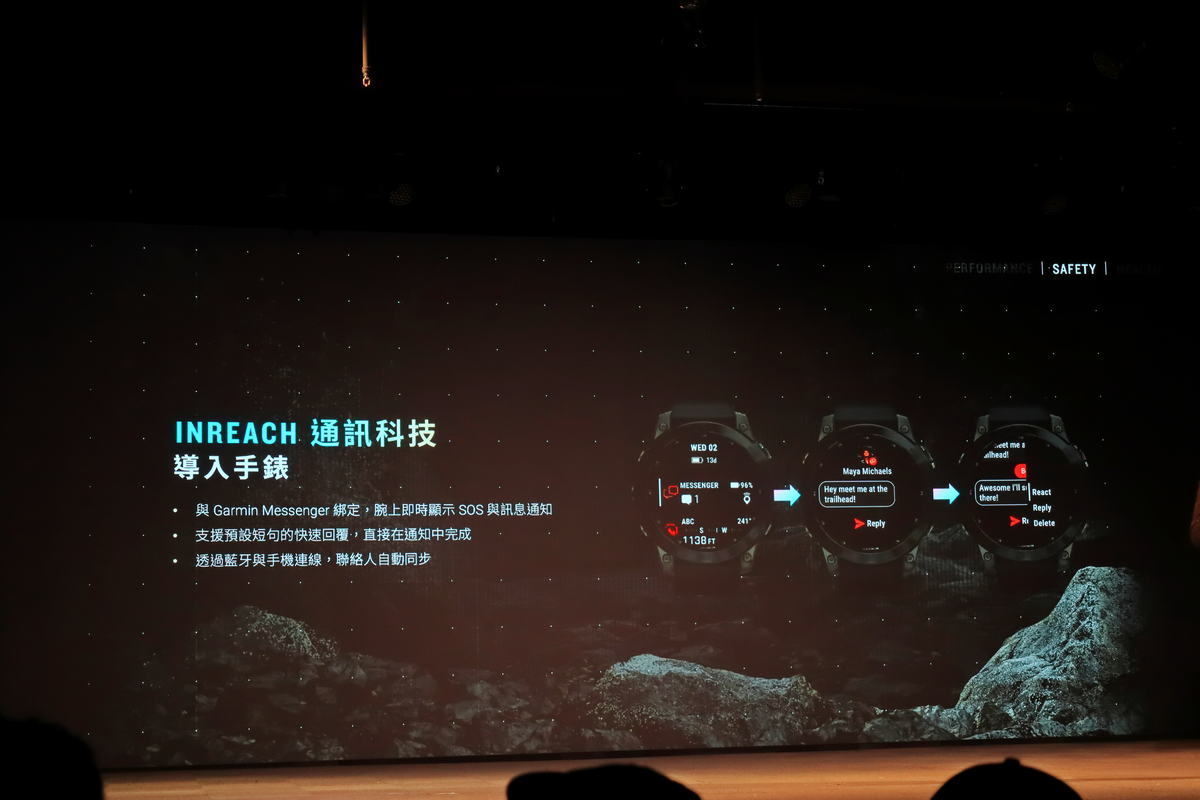 而在整個2025 Garmin Pro Technology Day科技探索日簡報的尾聲,更是迎來整個活動針對極限運動這最大亮點的科技分享,從近年來以廣受登山人士相當喜愛,可提供全天候24小時行動網路、衛星訊號進行追蹤定位、甚至是緊急通話與提供救援協助的inReach衛星追蹤通訊裝置,到今年更將這樣的inReach系統植入於全新的fēnix 8 Pro錶款之中,讓使用者進入野外環境進行探險運動時,僅需帶著腕錶出門的輕便,還能享有手錶即可進行inReach緊急通訊尋求支援的強大後盾,完美體現享受探險無須冒險的意念呢。