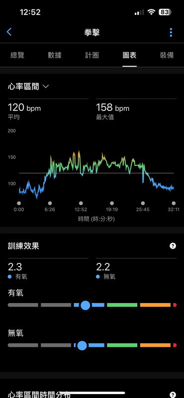 最後在這對我來說像是近乎極限的衝刺型運動30分鐘後,看著自己完成運動後的心率表現,扣除前段熱身與最後緩和的狀態下,中間衝刺的過程心率表現皆於Zone 3-Zone 4間遊走,同時最大心率185的我在這短時間內榨出158(85%)的馬拉松配速心率區間,以及有氧/無氧訓練效果皆相當平均的表現,雖然這趟拳擊有氧讓我除了腿部以外,身體其他部位痠痛整整兩天的刻骨銘心,但卻是對自己備戰馬拉松有著相當值得的高效訓練呢!每次參加Garmin的活動,都能藉由像是潛水、越野跑甚至是這次的拳擊有氧,來感受錶款帶來的科學化數據,進而讓自己接下來的運動表現更為精進同時避免因為高負荷比顯示著過度疲勞而不自知,讓自己有著受傷的風險,能享受運動同時永遠保持無傷痛的進步,我想即是每一天都能戰勝昨天的自己最棒的豐碩果實!