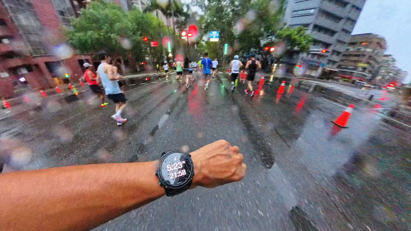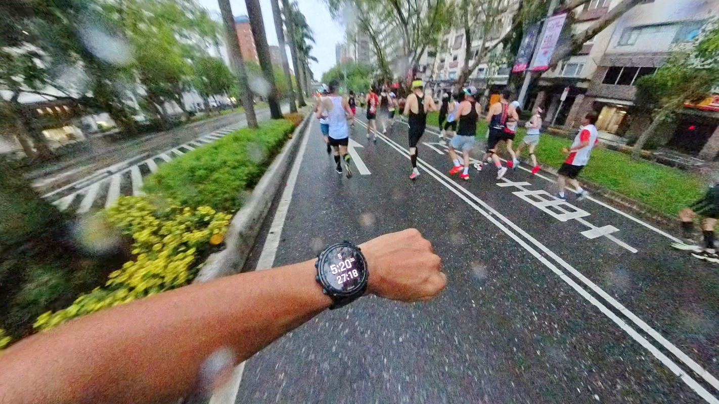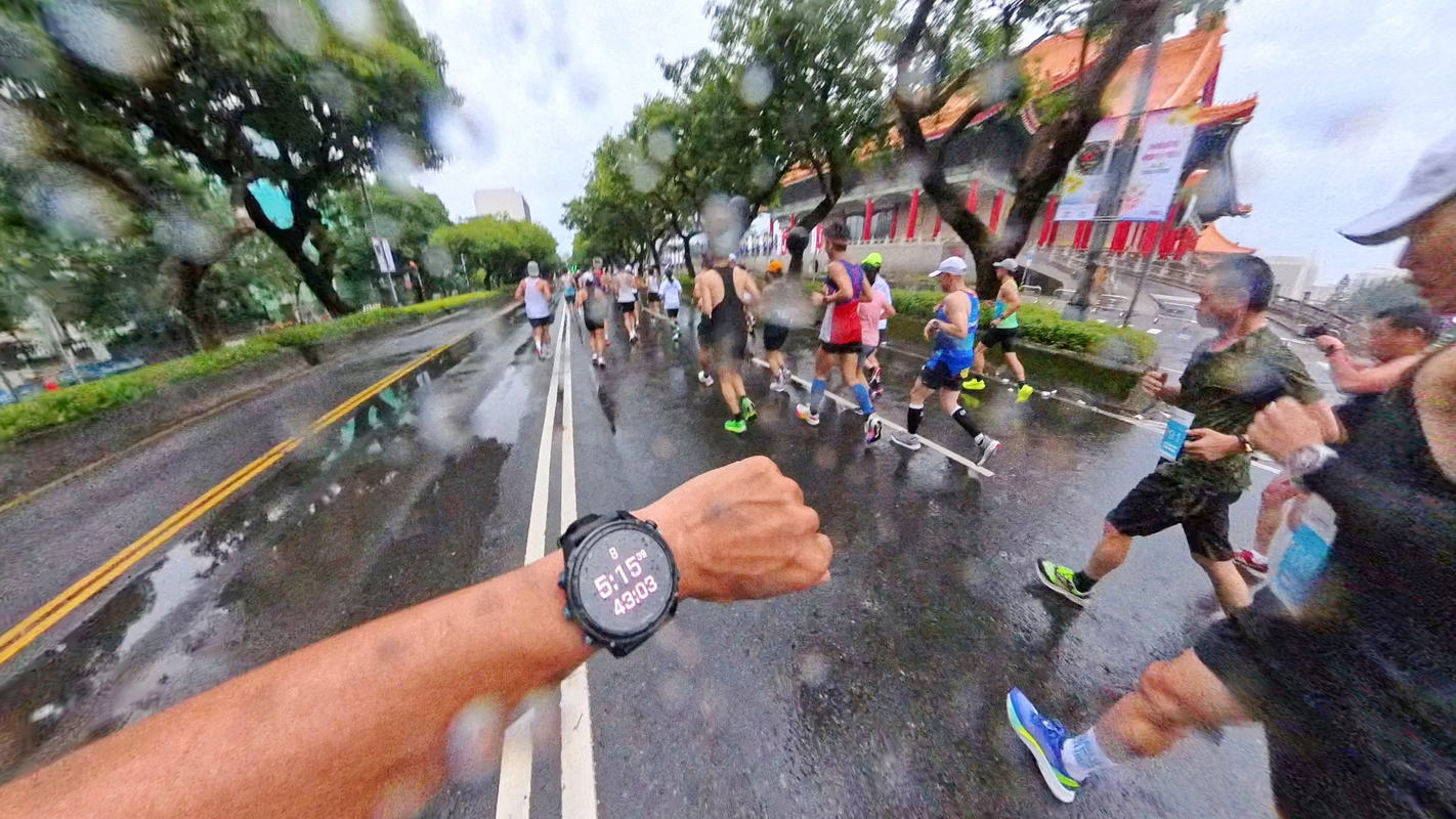 就在大家一同與大會進行倒數5、4、3、2、1後,凌晨5點一到,令人血脈賁張的世壯運半馬賽正式開始,從5點開跑時刻,隨著擁擠的人群一同快走抵達起跑龍門架的感應點時,大約過了1分10秒左右,此時按下手錶的Start鍵,開始享受這場世界級路跑賽事。首先!我們隨著龍門架的延伸,跑向仁愛路上,同時就在起跑路段兩側人聲鼎沸的加油聲中,伴隨著逐漸甦醒的天空下,從仁愛路欣賞著微光下的國父紀念館,並隨著國父紀念館的周圍,右轉進入光復南路後再右轉進入忠孝東路,欣賞著於2023年12月才正式啟用,同時目前能給予熱血棒球迷一處沁涼且遮風蔽雨的台北大巨蛋,於此同時以5:42的速率完成這場半馬的第1k,此外手錶同步顯示+3的良好體能狀況,也讓原先擔心沒有睡飽的我,增添不少“心靈跑力”呢。