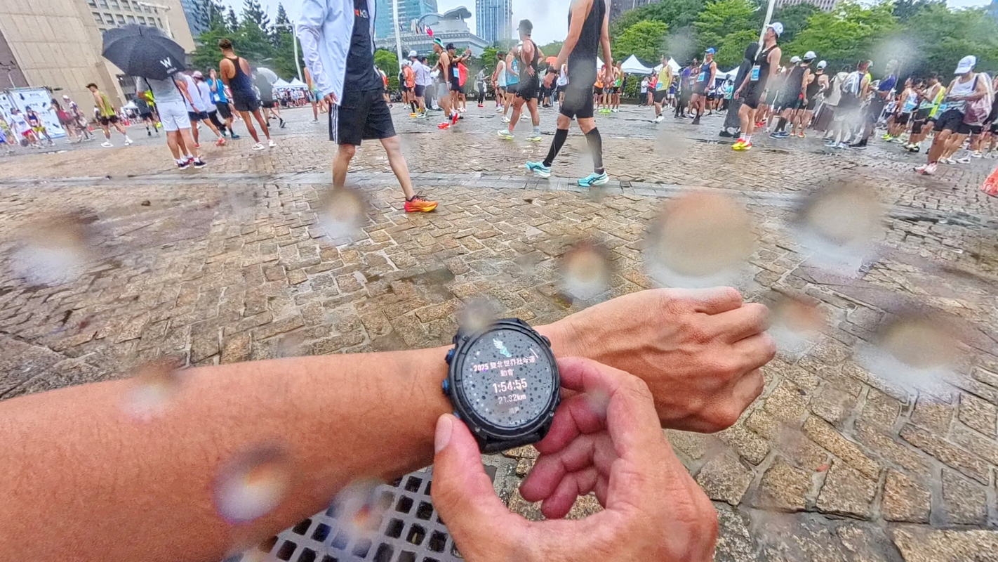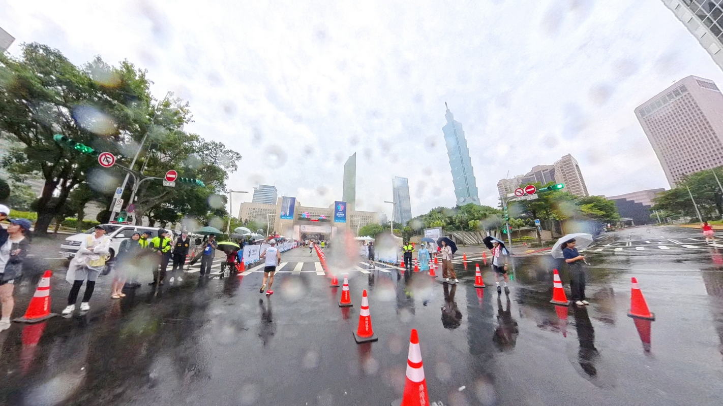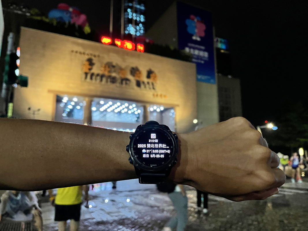 就在大家一同與大會進行倒數5、4、3、2、1後,凌晨5點一到,令人血脈賁張的世壯運半馬賽正式開始,從5點開跑時刻,隨著擁擠的人群一同快走抵達起跑龍門架的感應點時,大約過了1分10秒左右,此時按下手錶的Start鍵,開始享受這場世界級路跑賽事。首先!我們隨著龍門架的延伸,跑向仁愛路上,同時就在起跑路段兩側人聲鼎沸的加油聲中,伴隨著逐漸甦醒的天空下,從仁愛路欣賞著微光下的國父紀念館,並隨著國父紀念館的周圍,右轉進入光復南路後再右轉進入忠孝東路,欣賞著於2023年12月才正式啟用,同時目前能給予熱血棒球迷一處沁涼且遮風蔽雨的台北大巨蛋,於此同時以5:42的速率完成這場半馬的第1k,此外手錶同步顯示+3的良好體能狀況,也讓原先擔心沒有睡飽的我,增添不少“心靈跑力”呢。
