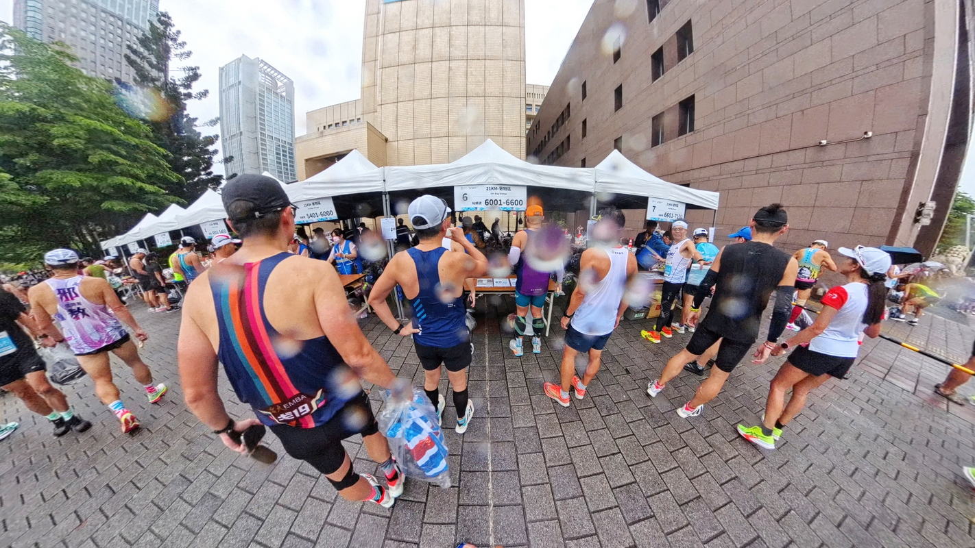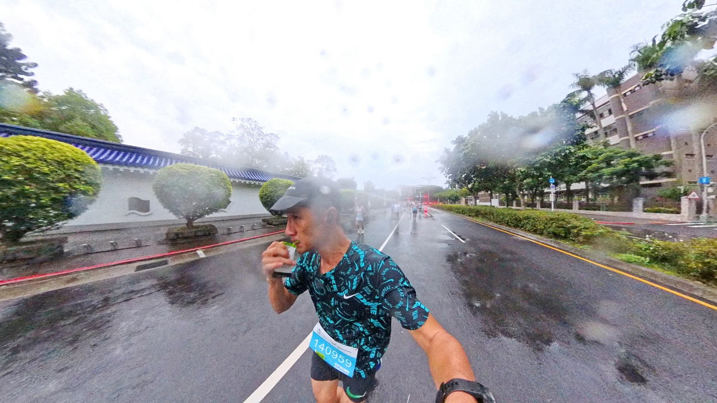 隨著信義路、杭州南路與愛國東路繞行完中正紀念堂,穿過羅斯福路,跑過位於愛國西路上昔日台北城南門的【麗正門】,並在捷運小南門1號出口處,以54分鐘完成大會10k的距離,同時此處的水站補給,恰好可讓我藉由清水一掃於9k時進行果膠補給時,以手擠壓果膠時沾附的黏膩感,與口腔中糖分與果膠的濃稠感,因此10k的水分補給,就不喝放在身後的運動飲料,改以水站中的清水來洗手漱口吧。