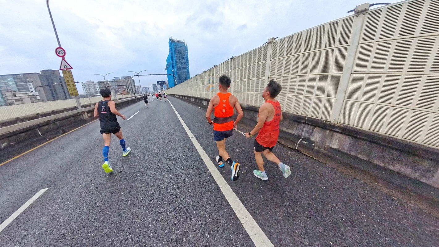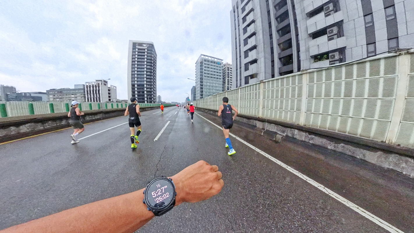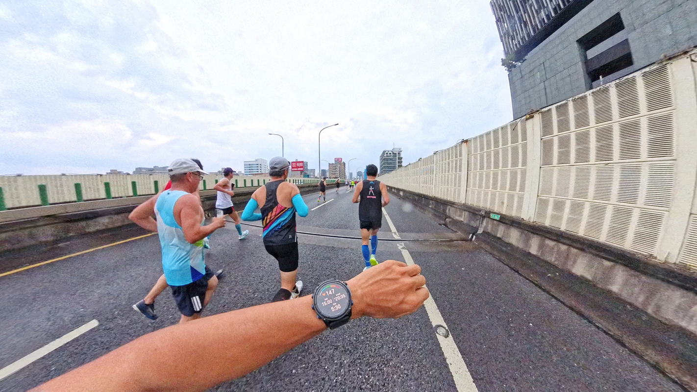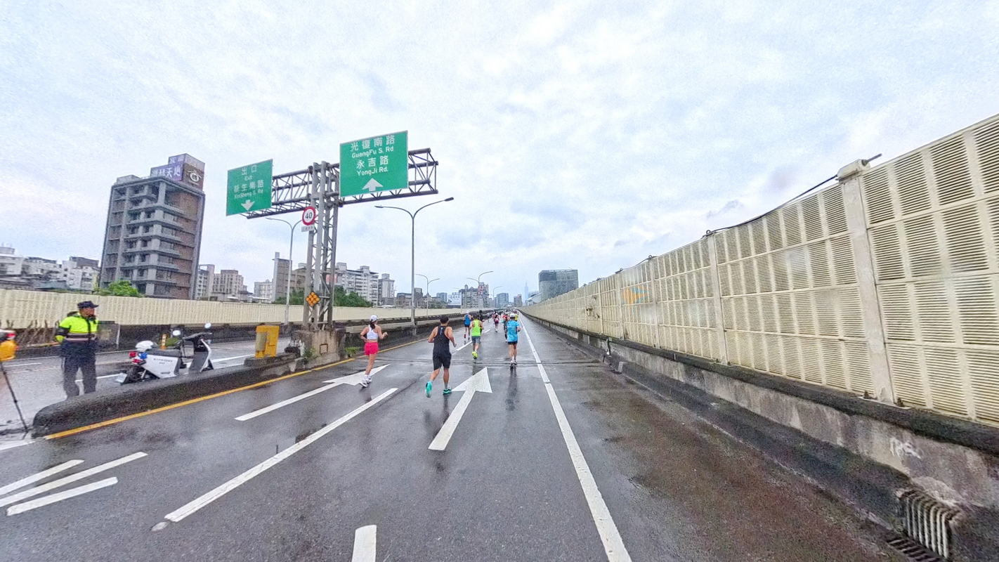 跑在這段市民大道雖然有著出乎意料的考驗意志力,不過沿途遇到有著陪跑員引領的視障跑者、單腳裝上義肢的跑者依然無畏這道關卡,奮力向前的精神,真的鼓舞了我許多,讓我記得只要掌握好自己的節奏,不疾不徐的往前,就能跑完這6k的上坡。在通過6k尾聲的折返點後,開始的一路下坡,以及看著正在辛苦跑往坡頂的辛苦跑者們,頓時有種一切通過考驗的豁然開朗,同時也剩下2k的路程,於是開始檢視自己剩餘的能量,準備在回到平面道路時,開始往終點全開奔馳。