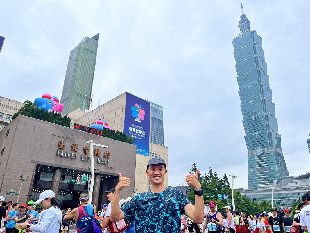 準備了近3個月,終於等到5月25比賽日這一天,起個大早在5點開跑前,抵達台北市政府前的起跑廣場,在大會依照號碼布分區的寄物區順暢的完成寄物後,在這約莫20度左右的涼爽氣溫中,完成熱身,走向龍門架下,與大家一起享受藉著雙腳在台北市首次能跑上市民大道,感受市區許多地標的世界級規格之世壯運半馬賽吧!