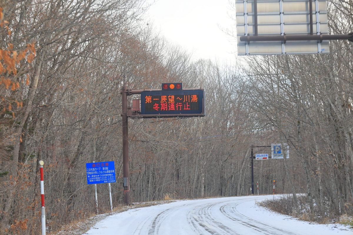 欣賞完丹頂鶴充滿仙氣的飛翔後,我們從鶴見台開著車北上,開啟第3天自駕旅程,就在喝完相當沁涼甘甜的延命長壽水,隨著像是秋天金黃暖陽照耀下的道路風景,一路朝預計的【摩周湖】前進,只是抵達前往摩周湖的山腳下,電子告示牌寫著“冬期通行止”的字樣,此時心想好不容易開了1個小時,該不會就這樣旅程出現變卦吧?不死心的再繼續往前,果然雪白的筆直道路上,被厚實的拒馬阻隔成兩段,對一窺這湖水清澈能見度曾超越貝加爾湖達41.6公尺的摩周湖,只能期待夏季旅行時再來造訪了!