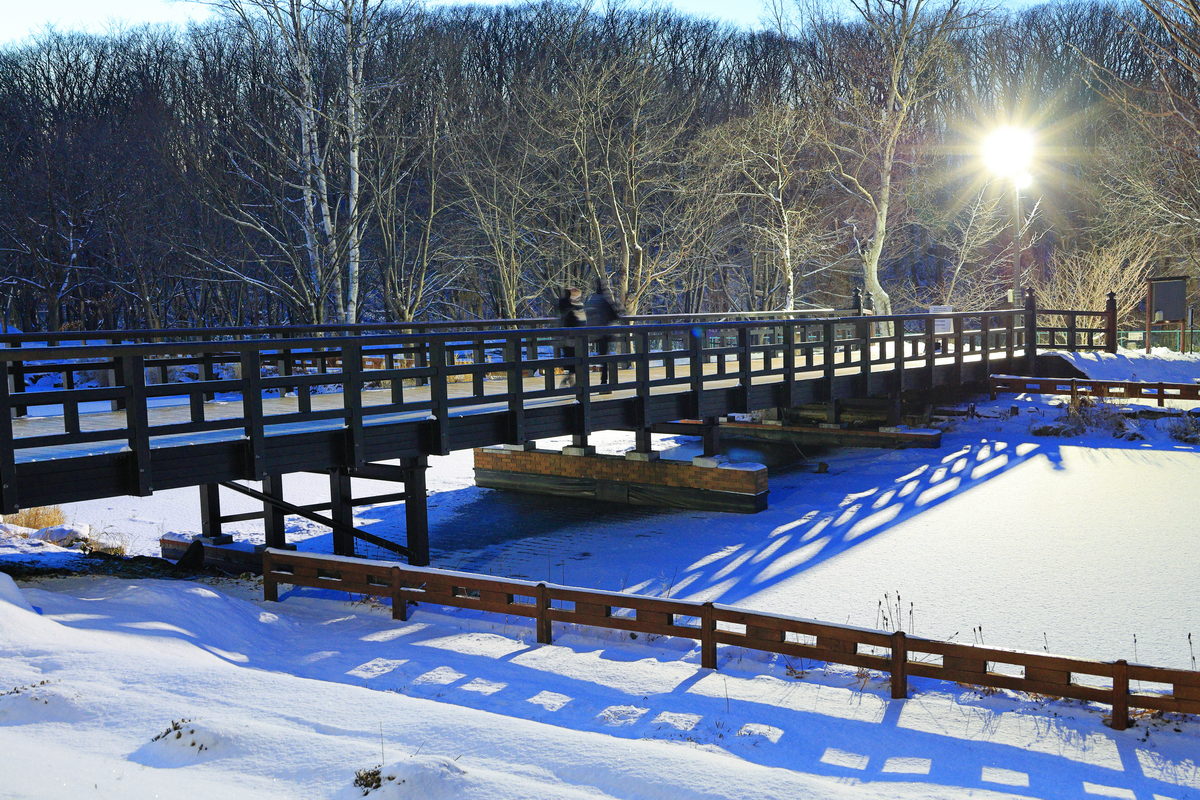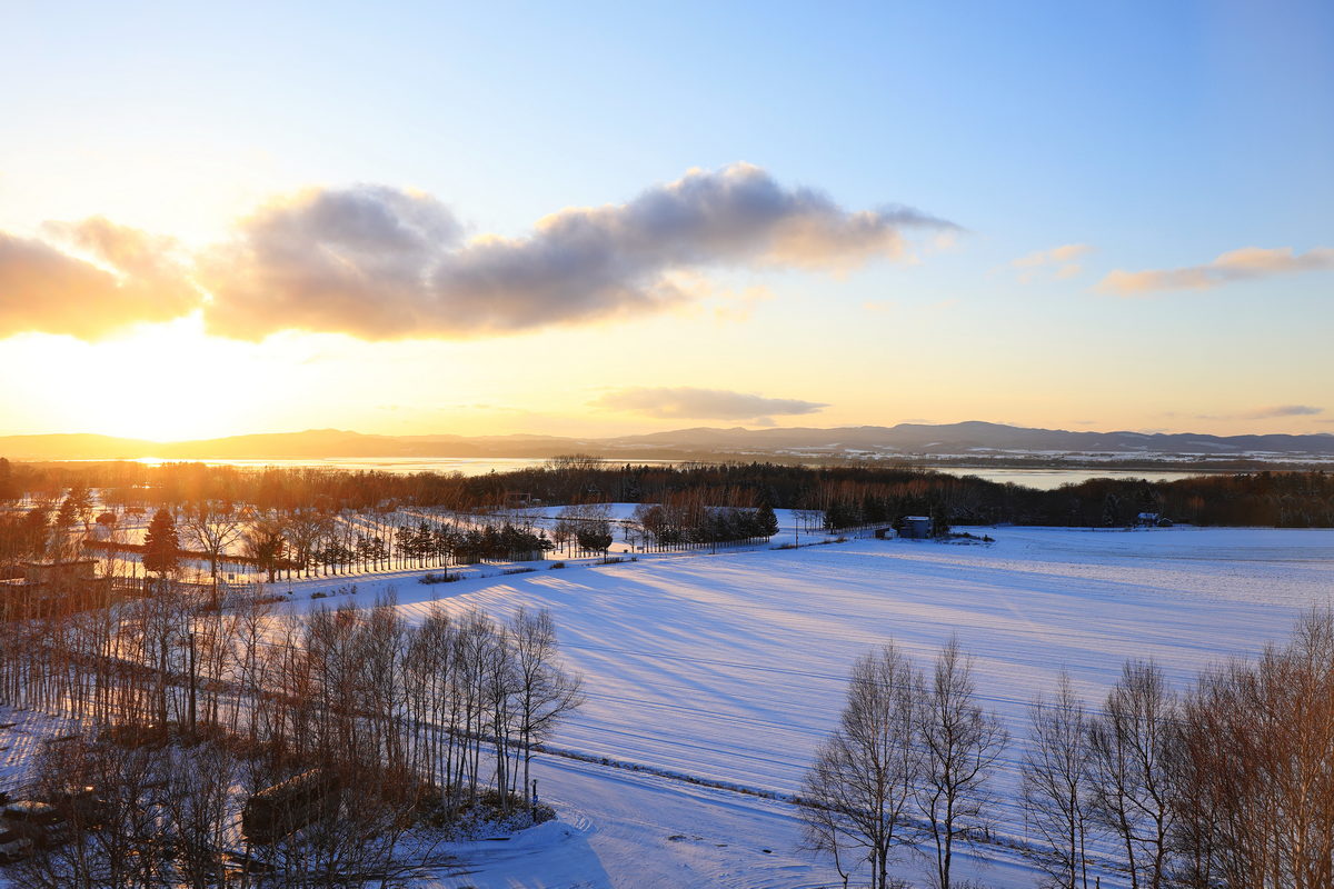 在大雪的覆蓋下,除了漫步於網走湖享受這片刻靜謐的美景之外,在近郊的童話之丘也是相當值得前往的景點之一,將視線從眼前覆滿白雪的田野丘陵,逐漸望遠至丘陵頂端整齊的落羽松,此時此刻陽光從雲隙間灑落於其中的光影,極致夢幻的不真實感,就如景點名稱一樣,猶如身處於童話之中呢!