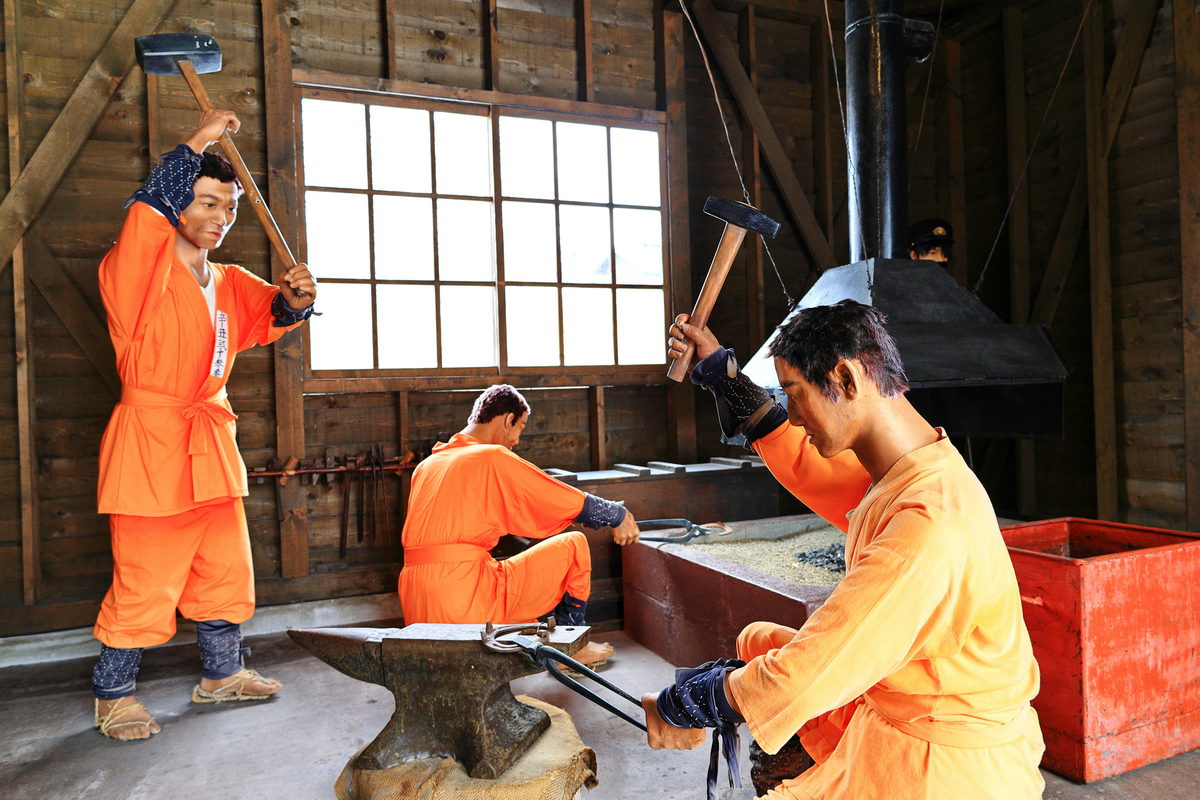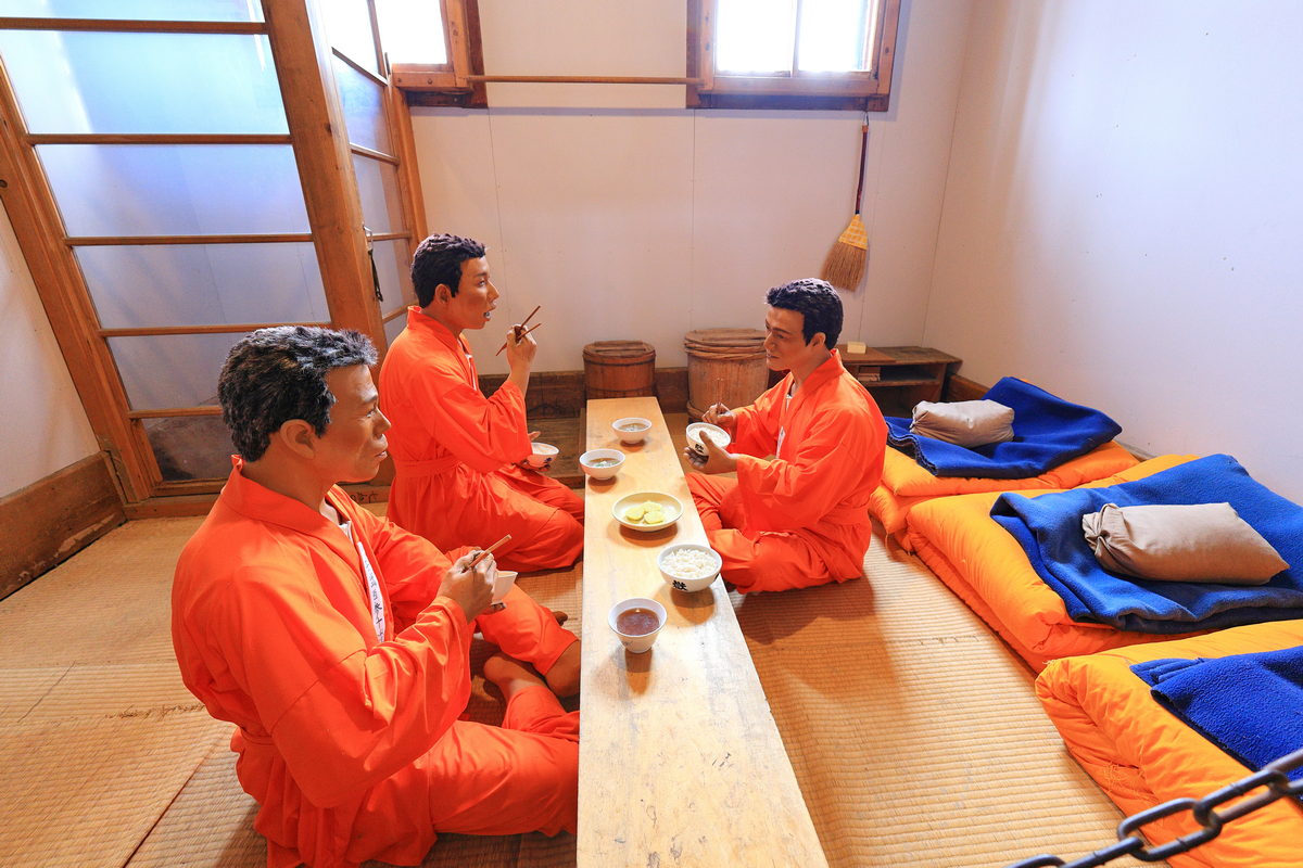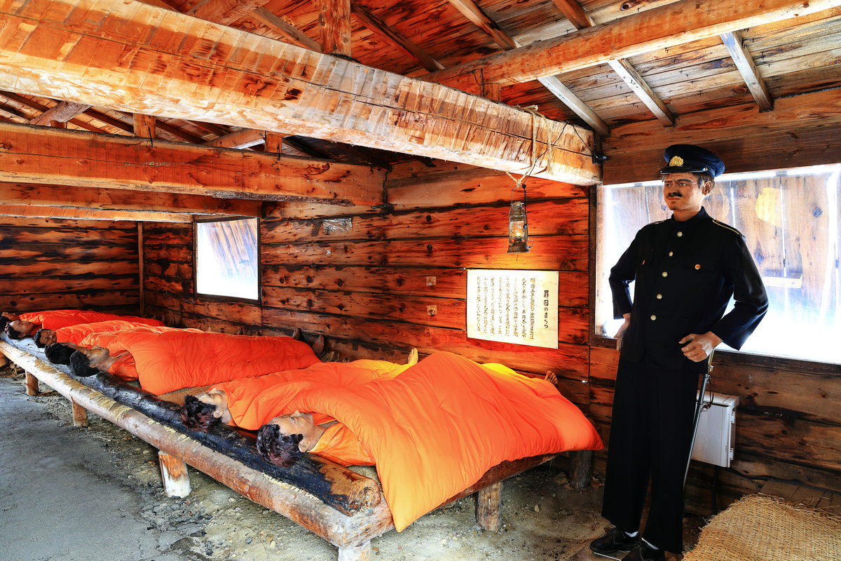 而這樣如同日本版北大荒的流放刑罰生活,皆透過將昔日監獄本體建築、修築中央道路時沿途修建的移動式監獄、監獄如何因應預算短缺而進行自給自足的農耕、醃漬生活,甚至是沉浸式的互動體驗,皆能在此一窺昔日開墾拓荒的艱辛,對我來說,很難想像在當時沒有開闢道路經驗的囚犯們,在飢寒交迫的環境下除了長時間進行勞動開墾之外,隨時利用砍伐的木頭,蓋起自己在夜裡僅4-5小時睡眠時間的移動式監獄,同時僅靠一條薄被與木頭為枕的惡劣睡眠品質,這是現今講求人道精神年代無法感受的艱辛呢!