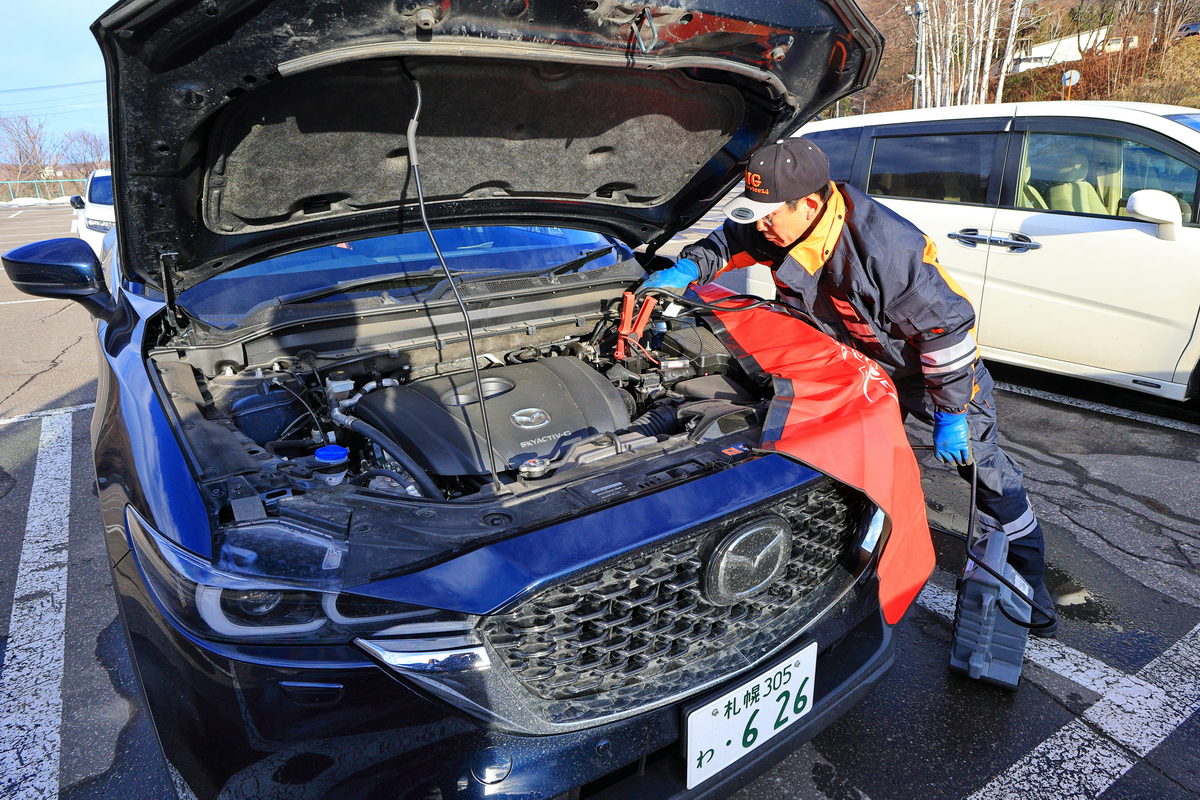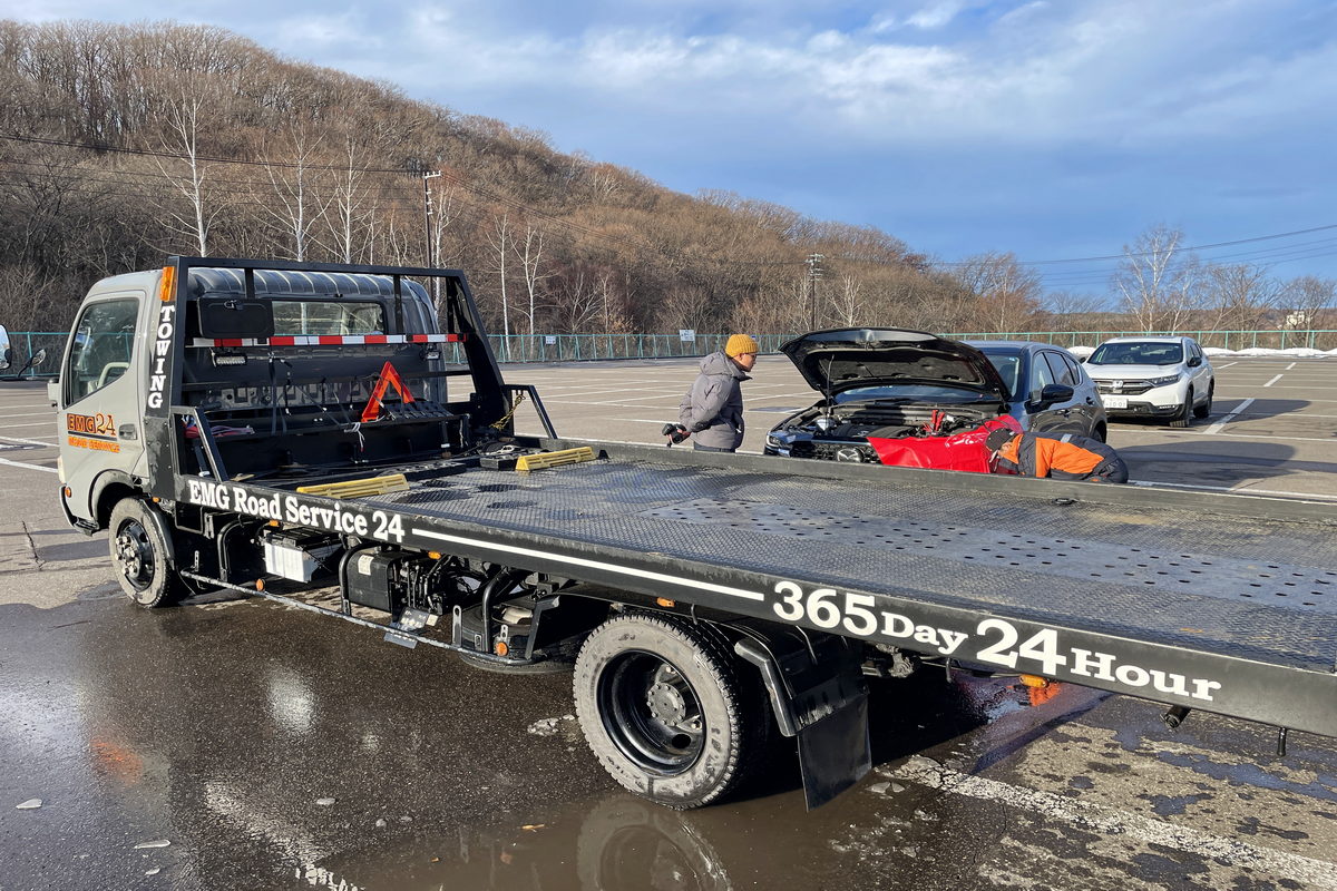 我想這樣的狀況是每個想要來場海外自駕的人都很擔心的風險,因此再遊記之外我會針對海外自駕的細節與狀況排除與旅伴們好好分享這次的經驗,簡單來說租車公司客服電話有著中日文翻譯的居中協調下,我們等到拖車司機開車前來,並以電霸接上車輛電瓶後順利完成引擎啟動,因此即便我們在此延誤了2個小時的時間,但至少車輛沒被拖走,繼續靠著開車讓電瓶充電的行駛方式往稚內邁進。