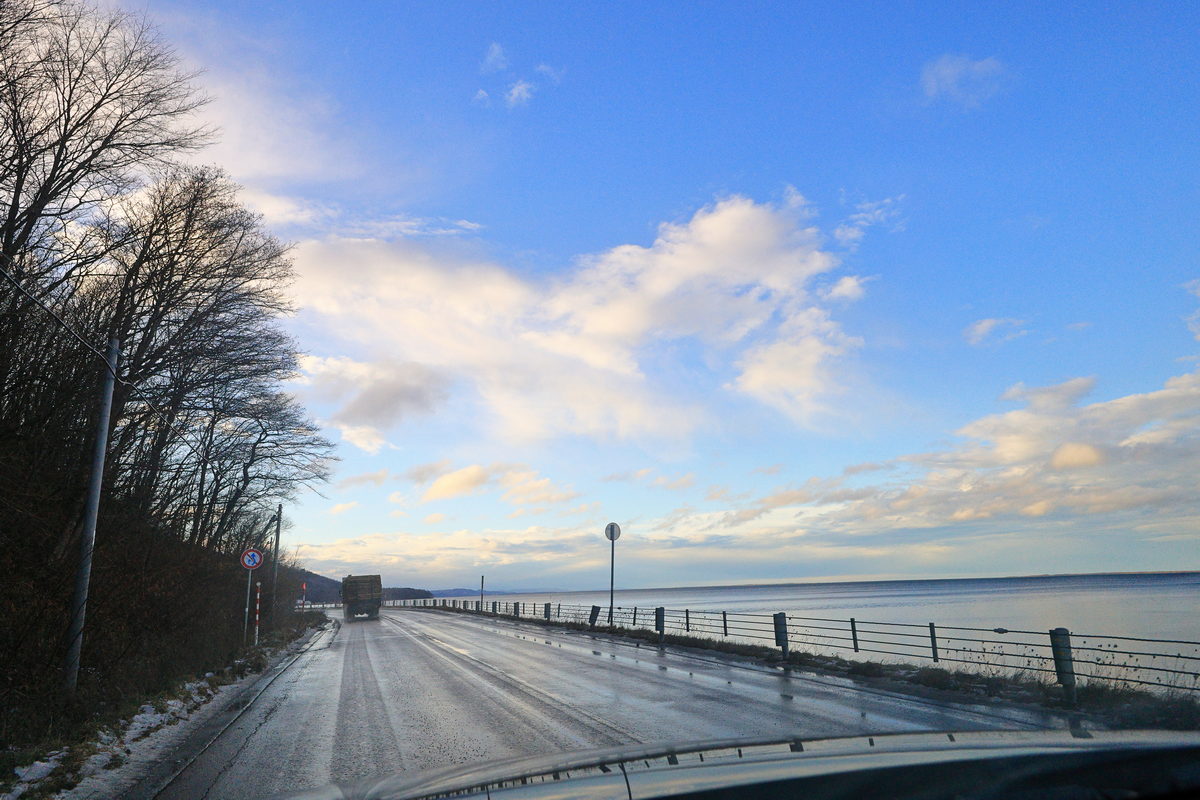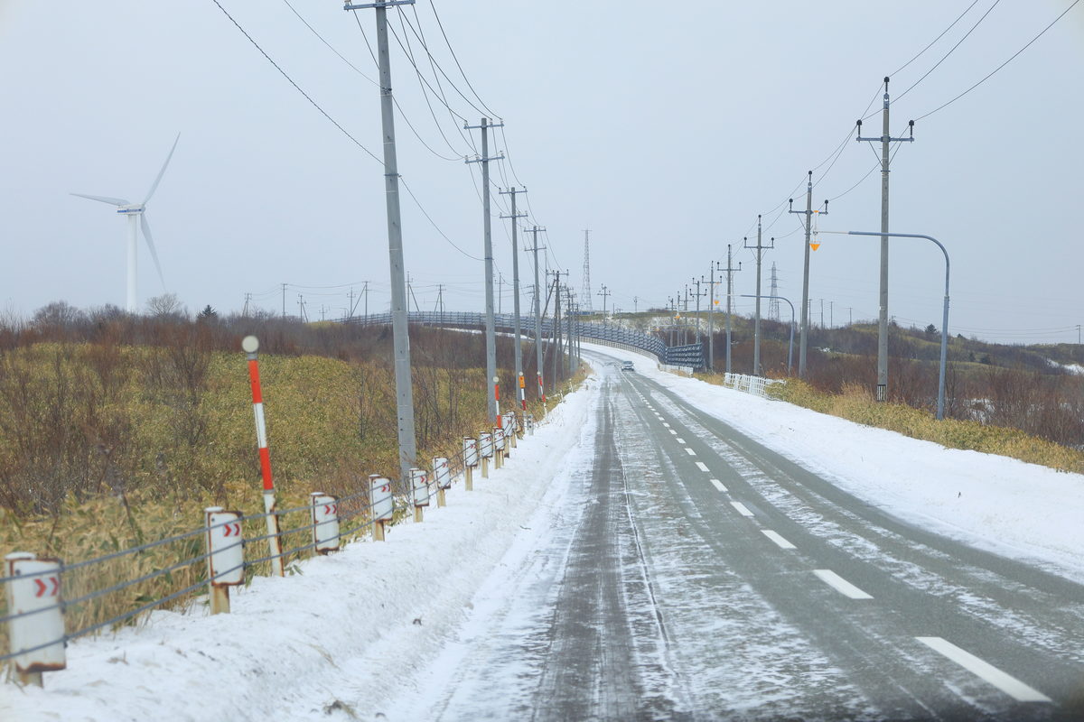 離開網走後,緊接著是此行自駕旅程中單日駕駛約315公里,同時為遙遠的一段,這一段緊鄰海岸而行的路,為的是前往北海道最北端的稚內,本想在這段耗時5小時的車程中,愜意欣賞難得一見酷寒冬季的海岸線公路景致,沒想到繼先前道路封閉的壞運氣,在離開網走監獄時再次發生,因為車輛無法順利發動了!!!