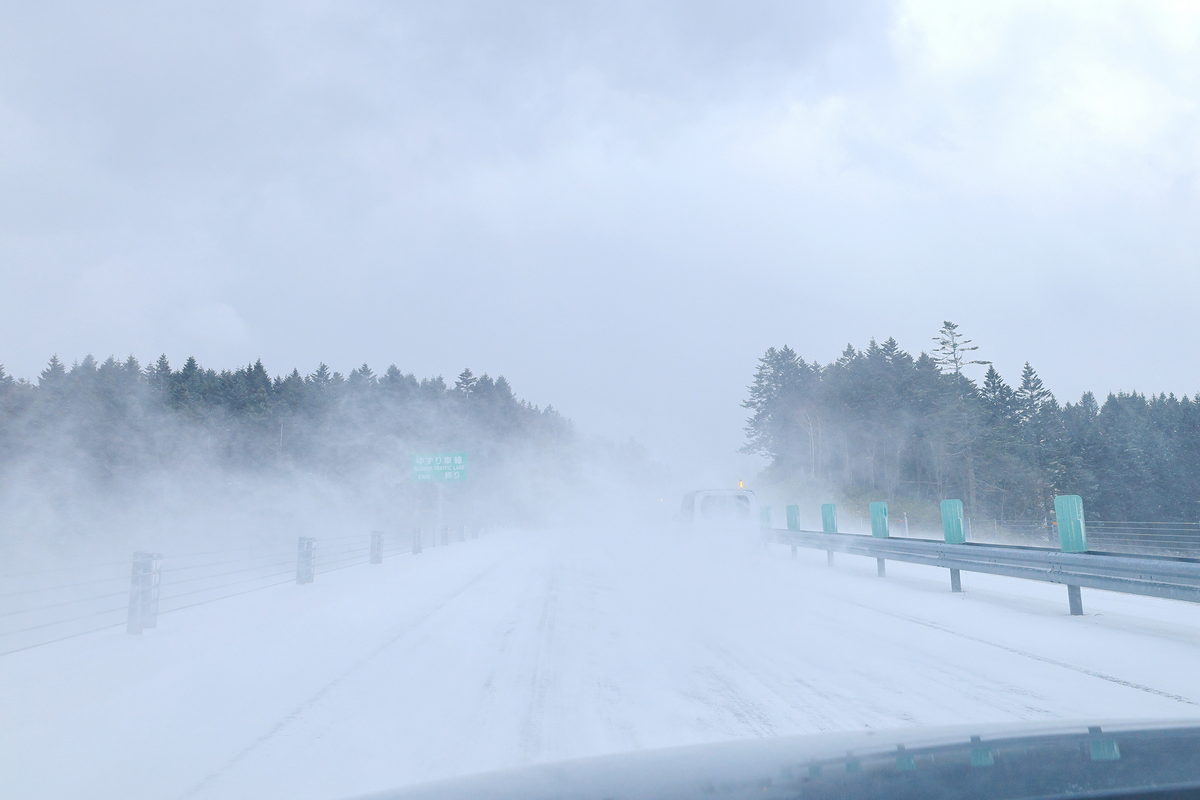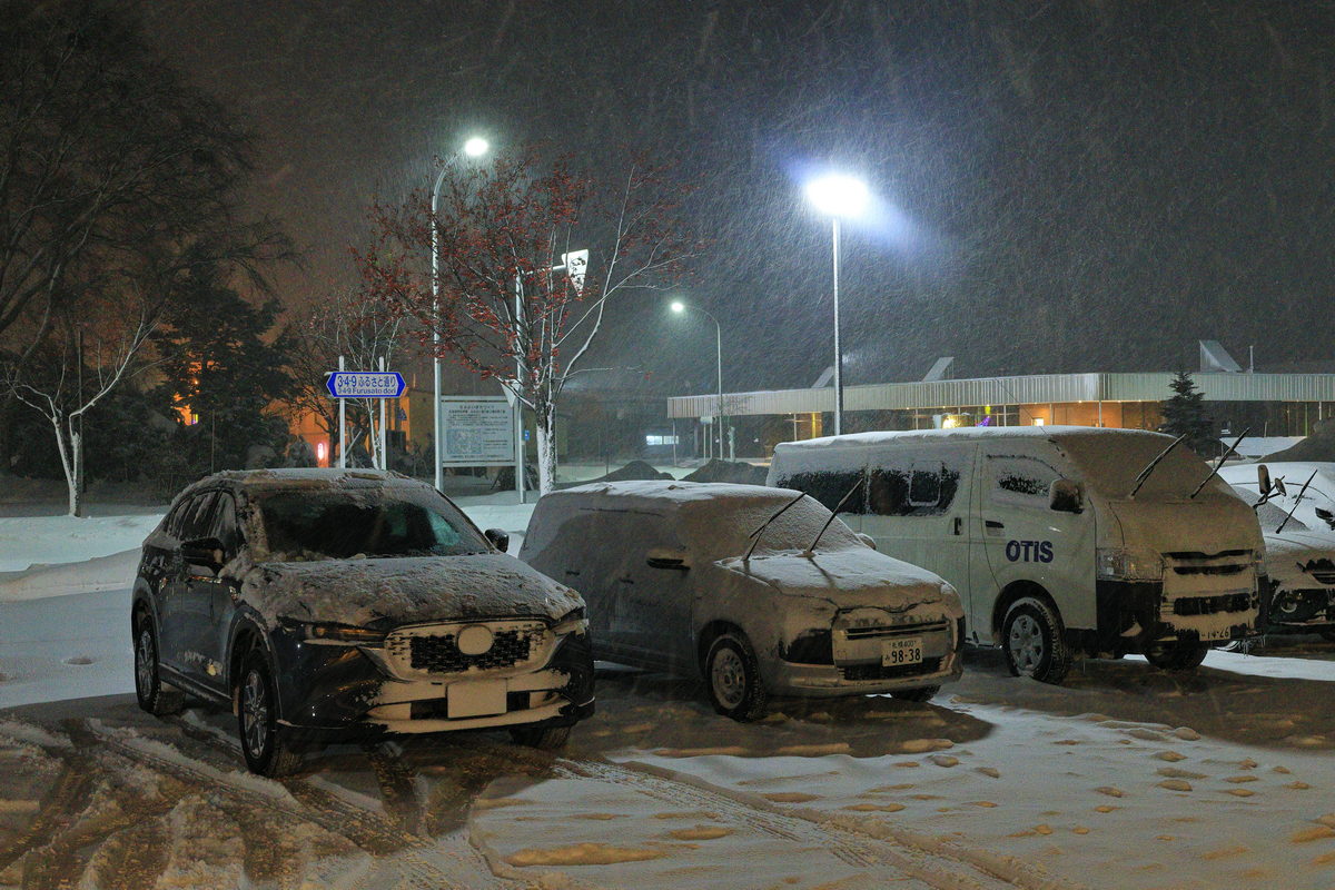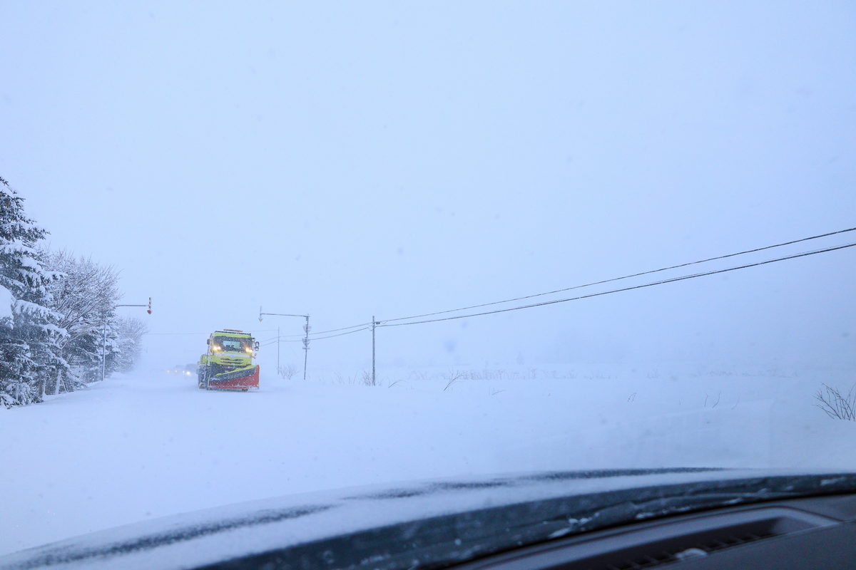 隨著道路持續南下,天色也隨著逐漸加劇的大風雪而漸漸變得昏暗,同時公路上不時出現鏟雪車清理道路的車隊,這也讓我們開車的節奏變得相當謹慎小心,終於我們在下午3:30的日落前抵達了住宿旅館,只不過抵達名寄的此時此刻,卻是北海道風雪最大的地方,因此停了一晚的車到了隔天早晨出發時,又是一陣狀況需要排除!!!!