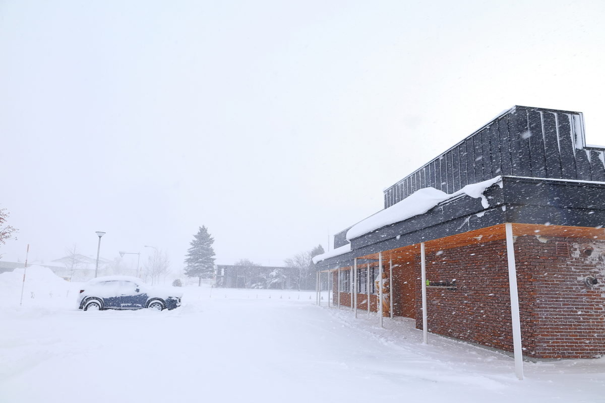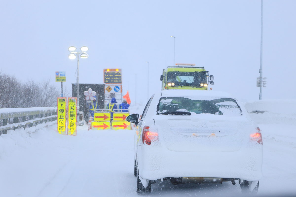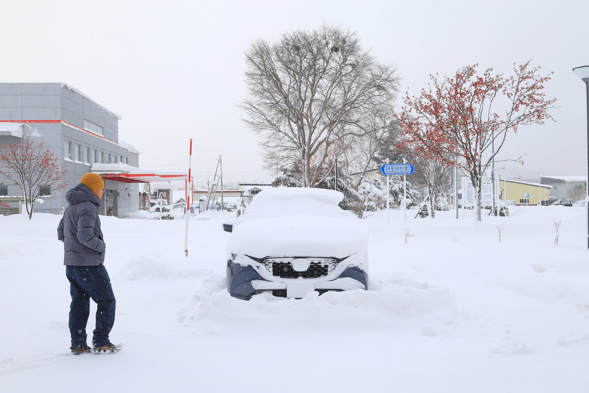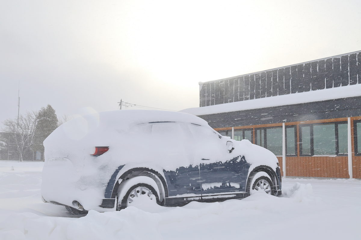 隨著道路持續南下,天色也隨著逐漸加劇的大風雪而漸漸變得昏暗,同時公路上不時出現鏟雪車清理道路的車隊,這也讓我們開車的節奏變得相當謹慎小心,終於我們在下午3:30的日落前抵達了住宿旅館,只不過抵達名寄的此時此刻,卻是北海道風雪最大的地方,因此停了一晚的車到了隔天早晨出發時,又是一陣狀況需要排除!!!!