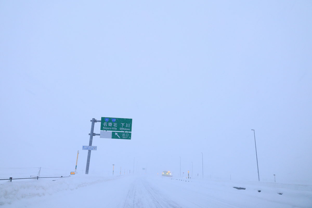 而後證明這個決定是再正確不過的,因為南下前往名寄的道路上,開始隨著公路逐漸進入山區,因此對比稚內海岸強勁的海風,這一段路上反而是下著朦朧的暴雪,若是停下來欣賞眼前風景,一切是如此的唯美浪漫,就如同近期Netflix當紅日劇初戀(First Love)拍攝的北海道一樣浪漫,但反觀正在開車移動的狀態下,除了像是台灣暴雨般遮蔽著擋風玻璃視線的暴雪之外,沿途若是遇上車輛超車時捲起大片揚雪時,那是更為驚險的駕駛狀態呢,也因為此行為北海道2022年入冬以來的第一場大雪,本來規劃這條路線中能隨著有北海道教父之稱的江戶時代探險家“松浦武四郎”,感受在他探索天塩川所著作天塩日誌下的北海道命名之地,但就是這一場入口積雪即溪的深度,讓我們無法再開車前往河岸旁而作罷。
